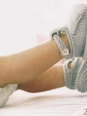 Ремешок, который застегивается на пуговицу, не даст тапочку свалиться с ножки. Размер: 3-6 мес. 50 г. пряжи (желательно для детской вязки), сред. толщины, спицы на 2,75 мм, 2 пуговицы Плотность вязания: 28 п.*37 р. = 10*10 см. …