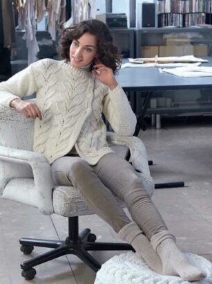 Немного укороченные рукава, отделка красивым волнистым узором, благородный серый цвет… Такой кардиган можно носить куда угодно! Размеры 34/36 (38/40) 42/44 (46/48) Ширина изделия по обхвату груди: 105 (113,5) 121,5 (132,5) см Длина изделия: 74 (78) 82 (96) см …