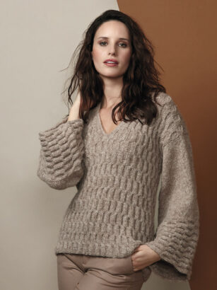 Этот джемпер связан простыми узорами, но благодаря удобному крою, пряжи из альпака и тщательно подобранным цветам выглядит он стильно и элегантно. Размеры 38/40 (42/44) 46/48 (50/52) ВАМ ПОТРЕБУЕТСЯ Пряжа Katia Baby Alpaca 100% (100% шерсти бэби альпака; 125 м/50 г) — 5 …