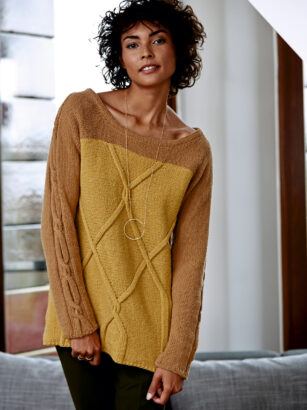 Нижняя часть рукавов этого пуловера связана в поперечном направлении, а затем по длинной стороне этих своеобразных манжет набирают петли для основной части рукава. Размеры 38/40 (42/44) 46/48 (50/52) ВАМ ПОТРЕБУЕТСЯ Пряжа Katia Kena (78% альпака суперфайн, 22% …