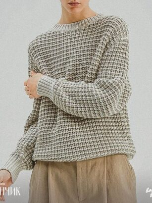 Чем зацепил меня этот нежный пуловер «в рубчик», как было указано в описании, что я пошла по ссылке? Тёплым цветом пряжи и мягким рельефом резинки 3 х 2 (3 лиц., 2 изн.) Квадратный вырез горловины …