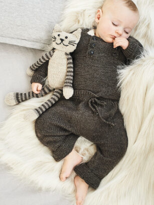 Цельновязаный пуловер с застежкой на пуговицы и удобные штанишки с отворотом образуют прекрасный костюм, в котором малышу будет тепло и удобно. Размеры 3/6 мес. (6/12 мес.)12/18 мес. (2/3 года) Пряжа Rico Design Baby Classic Dk (50% акрила, 50% полиамида; 165 м/ 50 …