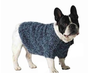 Нежный свитер, из меланжевой пряжи, хорошо будет сидеть на невысоких и коренастых собачках, например, мопса или др.