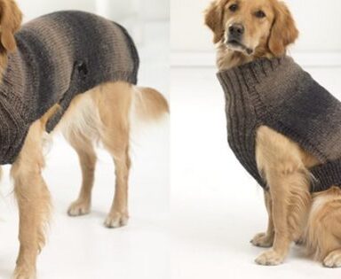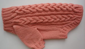 Очень хорошо смотрится кофточка с аранами. Но для свитера собачки не стоит делать араны на рукавах и передней полочке. Всё это будет только мешать питомцу. Достаточно украсить аранами только спинку.