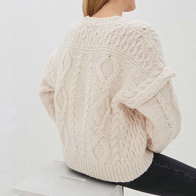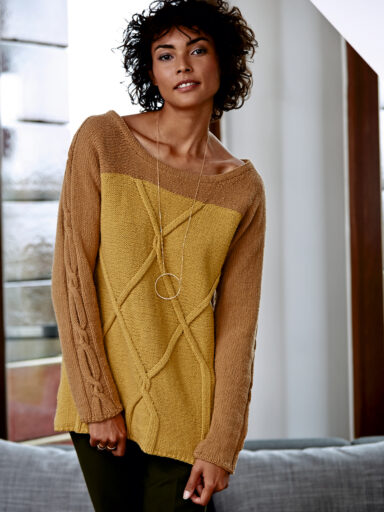Выполнена по аналогии с деталью переда с тем только отличием, что треугольная вставка полностью трансформирована в прямую, — хороший вариант вязания спинки в подобных моделях.