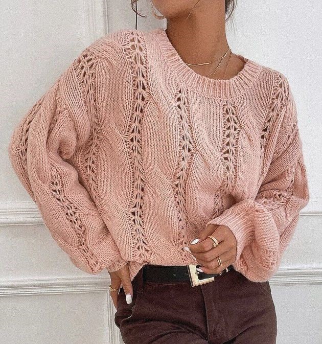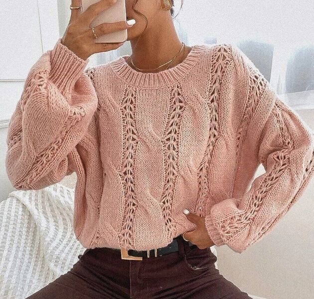 Джемпер с ажурными дорожками в сочетании с косами