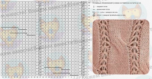 Такая модель пуловера вяжется просто, узоры элементарные, поэтому справится даже новичок. Давайте вернемся к узору, ниже я добавила схему для вязания такой комбинации.