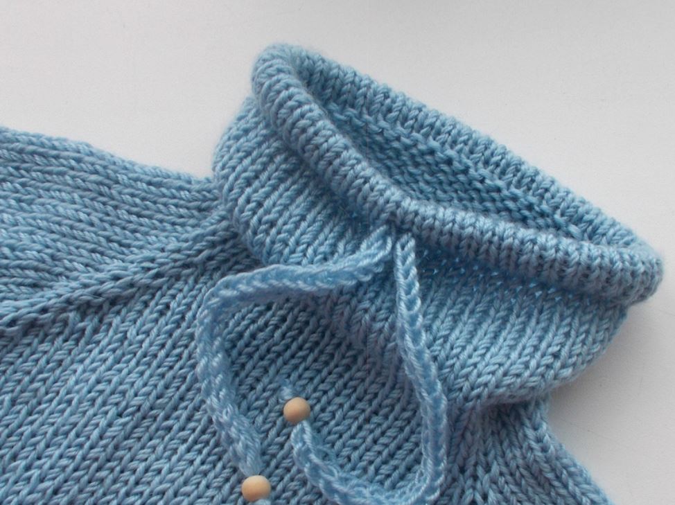 Связан на круговых спицах. поэтому нет ни одного шва, спина и шея надежно защищены. Такая модель прекрасно подходит для любого возраста.