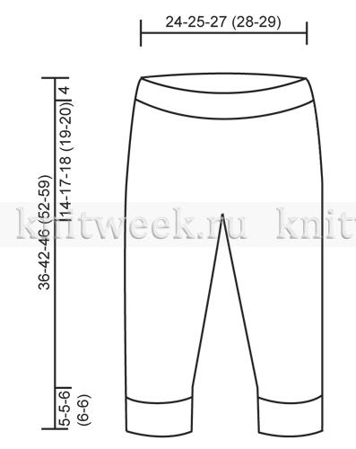 чулочных спицах по кругу, поставить маркер в начале круга. Далее делать убавки, как описано выше, всего 14-13-12 (11-10) раз для размера 1/3 месяца: в каждом 2-м и 3-ем кругу, для размера 6/9 месяцев: в каждом 3-ем и 4-ом кругу, для размера 12/18 мес.: в каждом 4-ом и 5-ом кругу, для размера 2 года: в каждом 6-ом и 7-ом кругу, для размера 3/4 года: в каждом 9-ом и 10-ом кругу = 47-52-57 (62-67) п. Через 31-37-40 (46-53) см от начала вязания перейти на спицы 2 мм и провязать 1 круг лиц.п., равномерно прибавив 11-12-13 (16-17) п. = 58-64-70 (78-84) п. Провязать 5-5-6 (6-6) см резинкой и закрыть петли. Вторую штанину вязать симметрично первой.