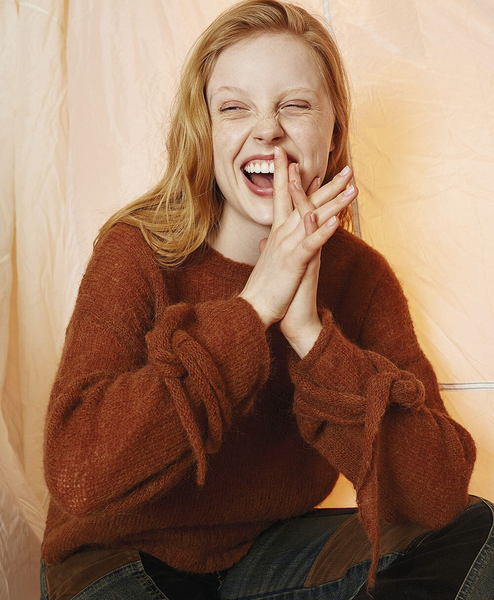 Размеры S/M (L/XL) ВАМ ПОТРЕБУЕТСЯ Пряжа Langyarns Alpaca Superlight (54% шерсти альпака суперфайн, 24% полиамида, 22% мериносовой шерсти; 199 м/ 25 г) — 6 (8) мотков рыжевато-коричневой (№ 749.0167); спицы № 3 и 3,5; короткие круговые спицы …