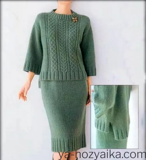 Платья, костюмыВязаный костюм спицами с юбкой elena14.11.202414.12.2023 Вяжем женский костюм спицами. Вязаные костюмы с юбкой схемы