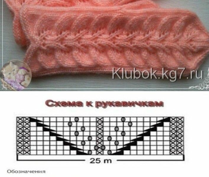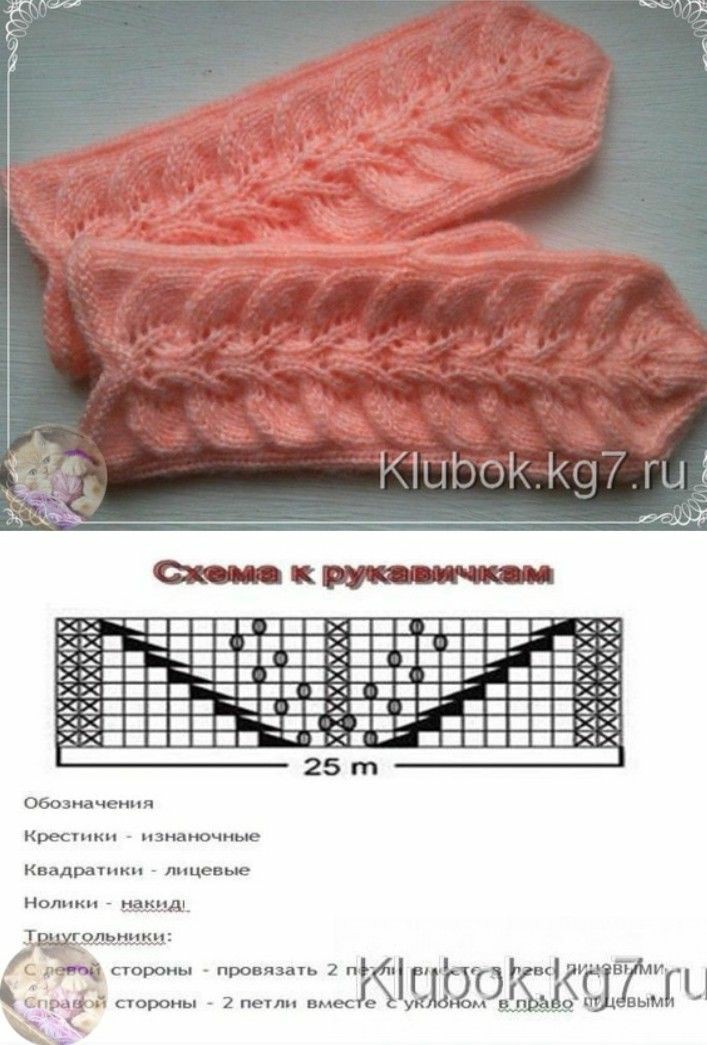 Варежки с узором перекрещенные петли резинки 1/1 влево / вправо в каждом ряду