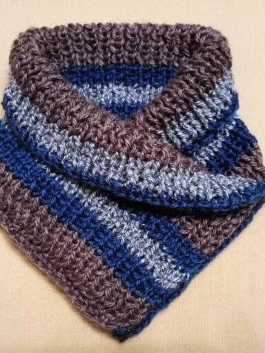 Второй наушник связать аналогично, но нить не обрывать, а петли наушника провязать лицевыми на круговых спицах №4,5.