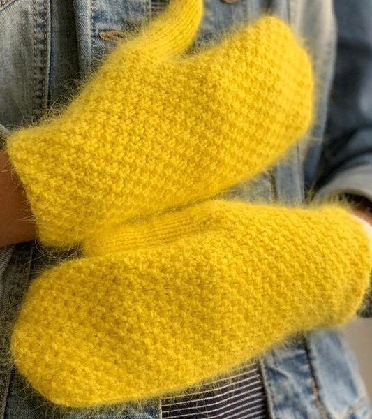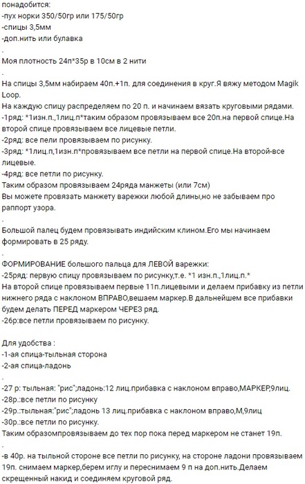 Варежки спицами из пуха норки