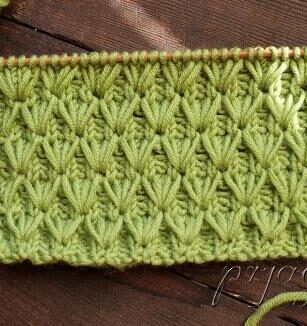 Используем нить в 2 сложения. Число петель кратно Кромочные петли в описании не участвуют. 1 ряд : [ 1 лицевая, сделать двойной накид ( обмотать правую спицу рабочей нитью 2 раза) и следующую петлю снять не …
