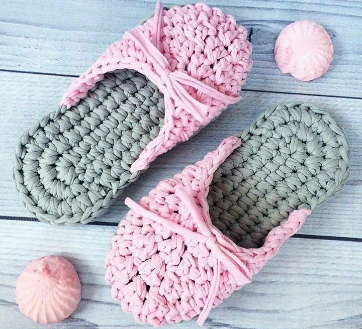 Трикотажная пряжа дарит простор для фантазии! Давайте вязать тапочки! Как видите, вариантов изготовления такой вещи много. Тапочки из трикотажной пряжи получаются очень прочными и, одновременно, нежесткими.