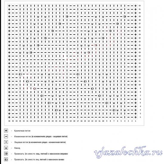 Раппорт узора состоит из 32 петель и 32 рядов.