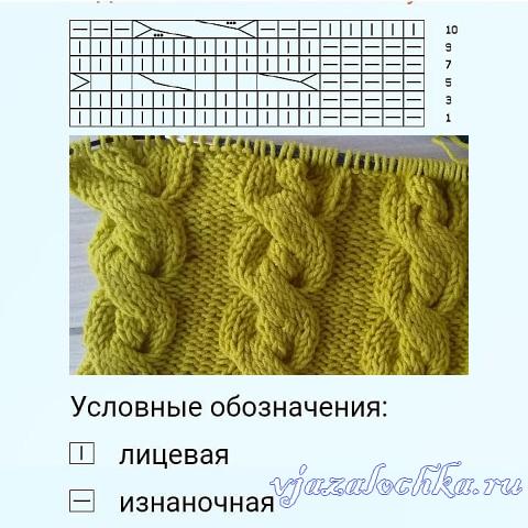 Двойной жгут спицами схема