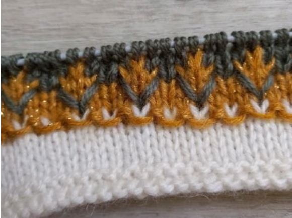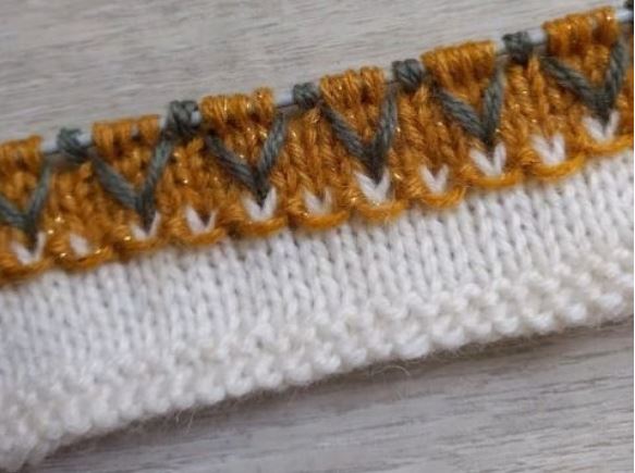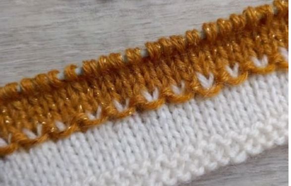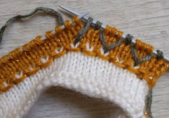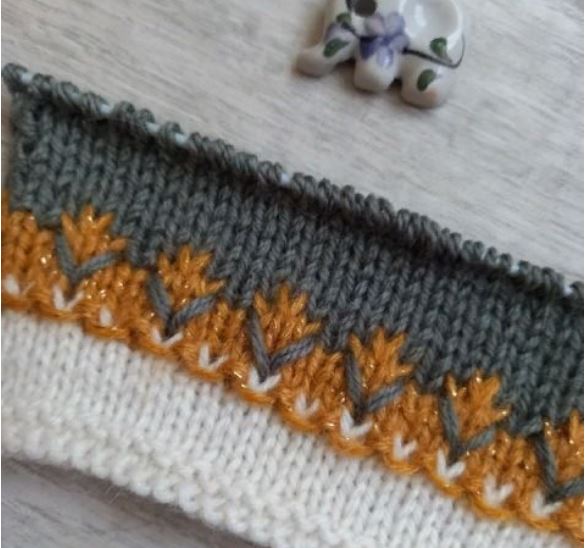 Таким образом можно вязать кайму по низу изделия и на рукавах вместо манжет. Этот узор подойдет не только для одежды, но и для вязания носочков, варежек.