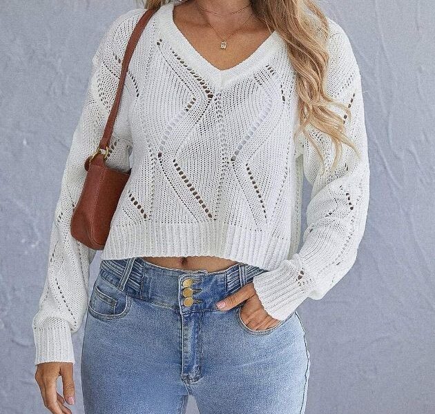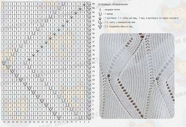 Не носите укороченные модели — можно связать привычной длины. В лицевых рядах петля переснимается с левой спицы на правую, как изнаночная, выполняется накид, а в изнаночных рядах узора провязывается вместе с накидом лицевой.