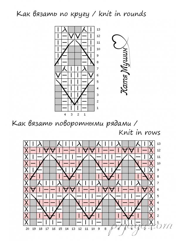 Узоры вязанияУзор Фисташки на резинке спицами elena14.11.202415.12.2023 Набрать количество петель кратно 4+2 петли. Вязать по схеме. Повторять 2-13 ряды схемы.